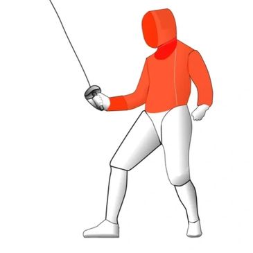 Saber is a “thrusting” weapon as well as a “cutting” weapon (using the tip as well as the side of the blade). The target area is from the waist line up, including the arms, to the top of the head, simulating the cavalry rider on a horse.